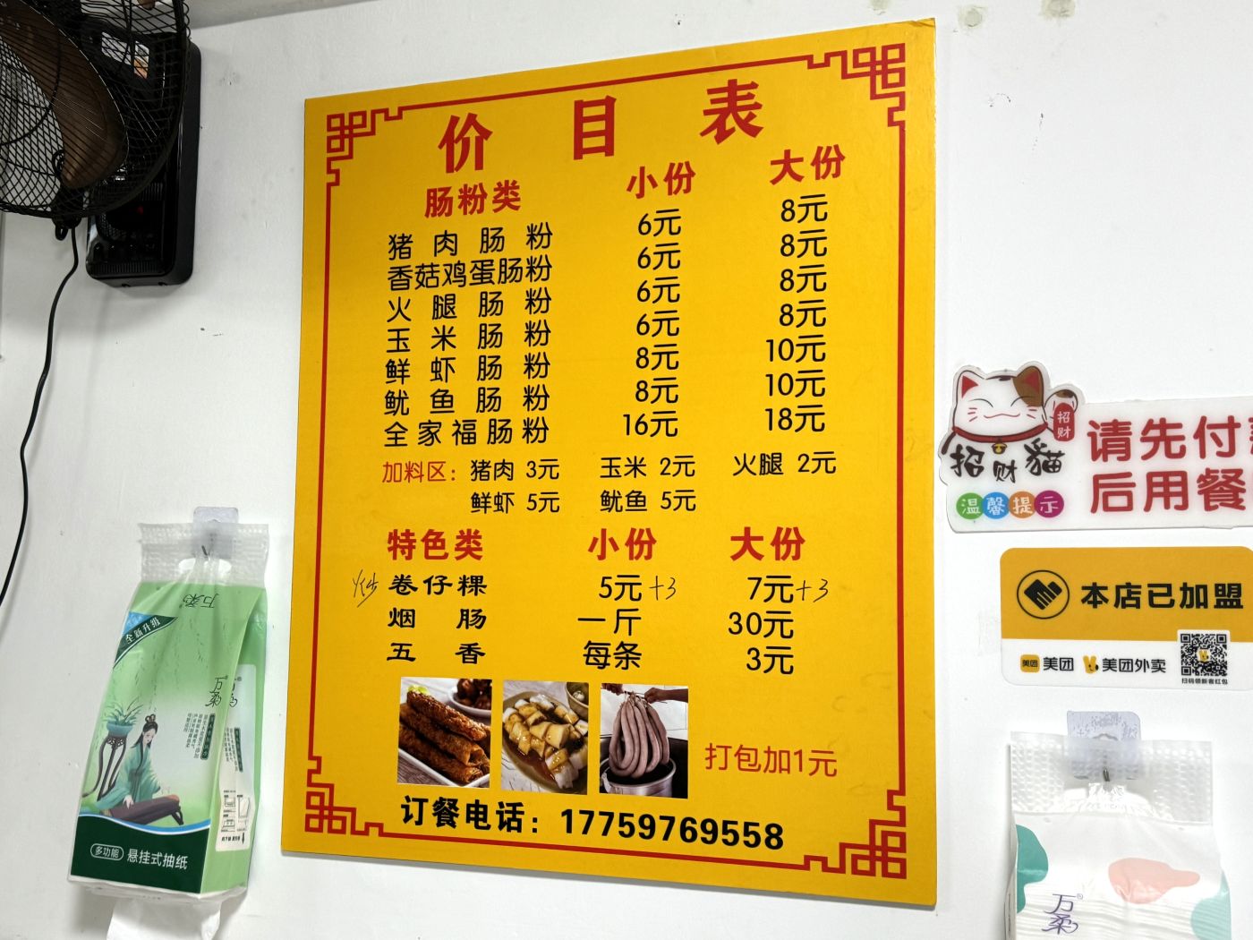 広東省と同じく、ここでも腸粉は朝ごはんの定番。とはいえ、広東省広州市や香港の茶楼と比べると価格は安く、生地は二回りほど大きく、具をたっぷり巻き込んでいて大らかな雰囲気。注文時、卵を追加するのも人気です。