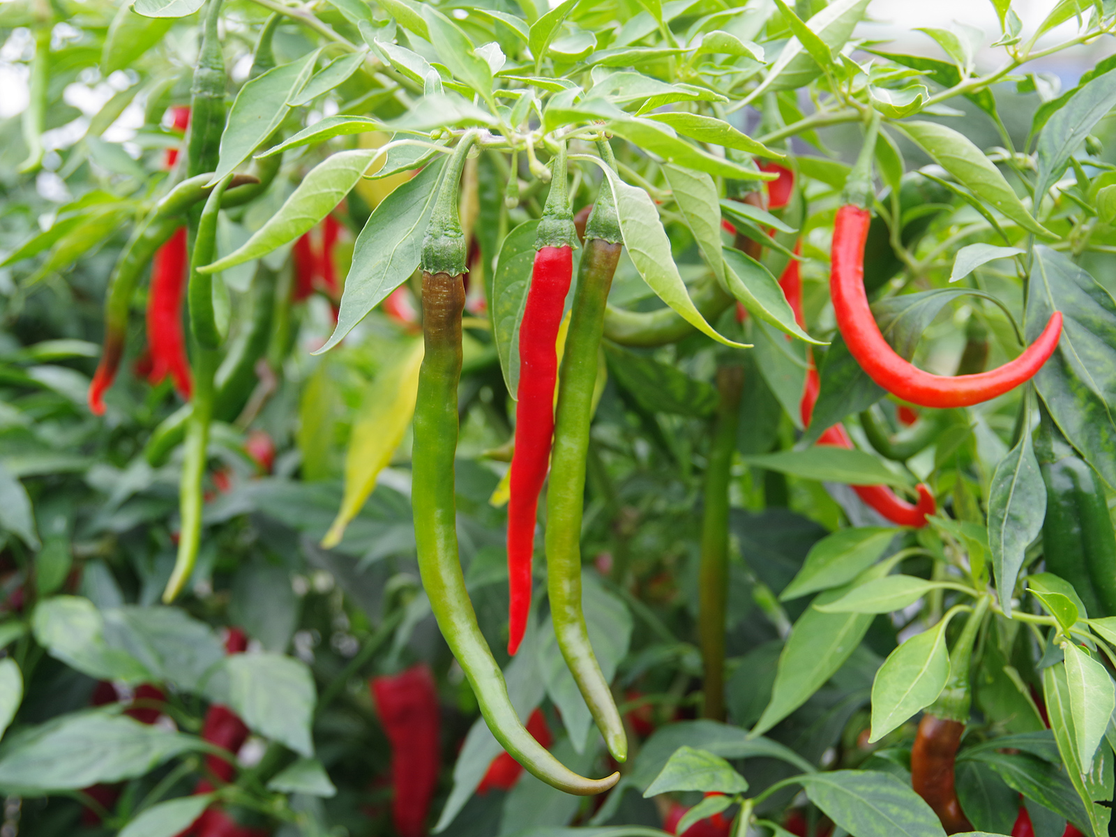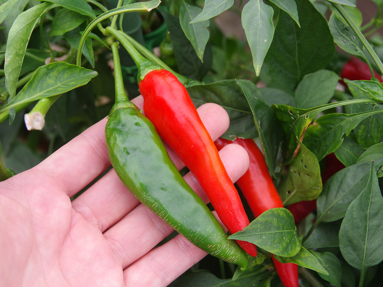 「二荊条(にけいじょう)は四川料理でとてもよく使われる唐辛子で、見ての通り肉厚で柔らかく、辛さよりも香りや旨みが強いのが特徴。発酵調味料や乾燥唐辛子にも大活躍する、うちの主力品種です」