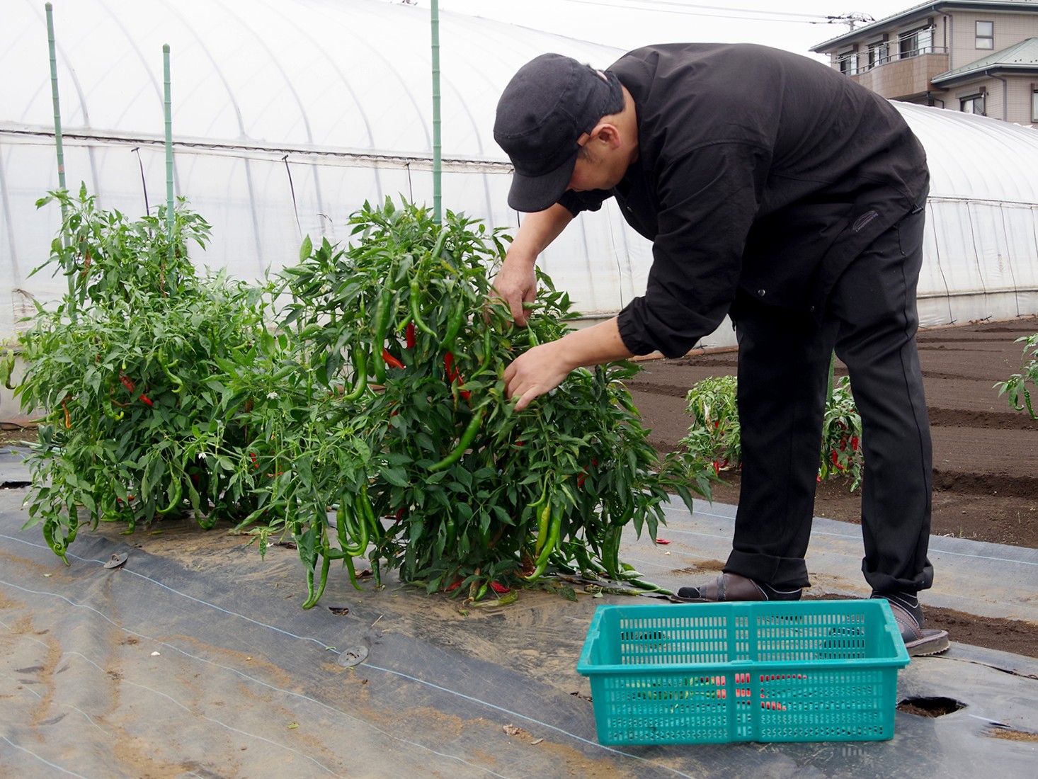 西東京市にある、先祖代々農家を営む実家の畑の一部で唐辛子を育てている蓮見さん。昔はさまざまな唐辛子を栽培していたそうだが、現在は二荊条(にけいじょう)をメインに、線椒(せんじょう)をサブで育てている。