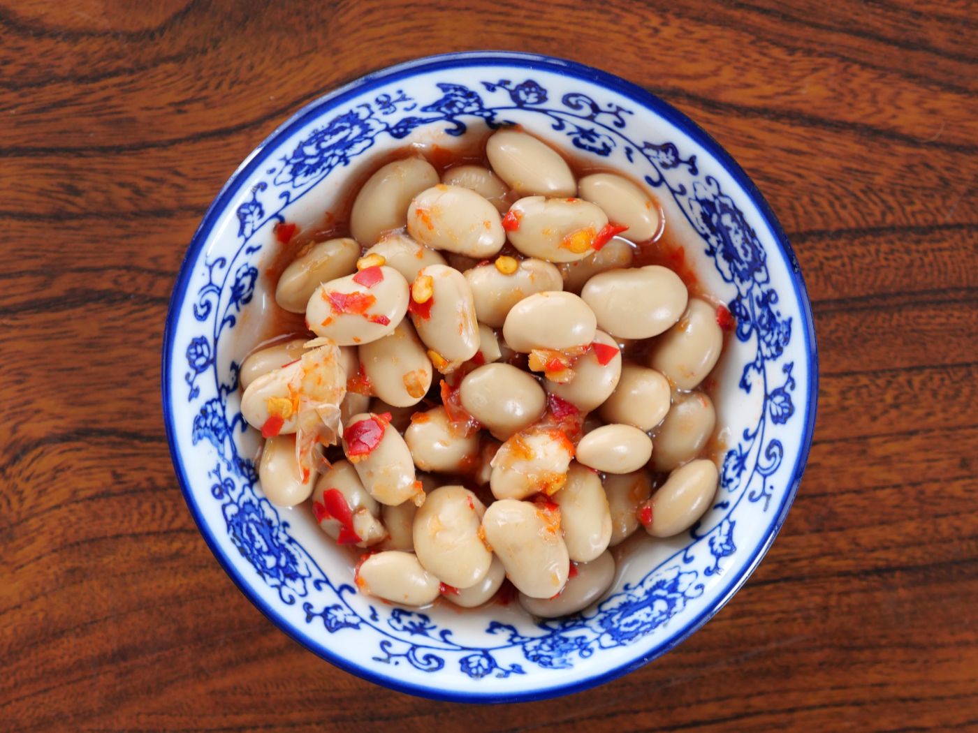 水豆豉とは、水で戻した乾燥大豆を蒸し、やわらかくなったら温かい場所で発酵させ、納豆のような香りがでたら、塩水に漬けて発酵させた調味料。西南地方では鍋のつけだれや前菜の和えものなどに用いられる。唐辛子と一緒に使われることが多いため、あらかじめ生唐辛子を絡めたものがこちらだ。