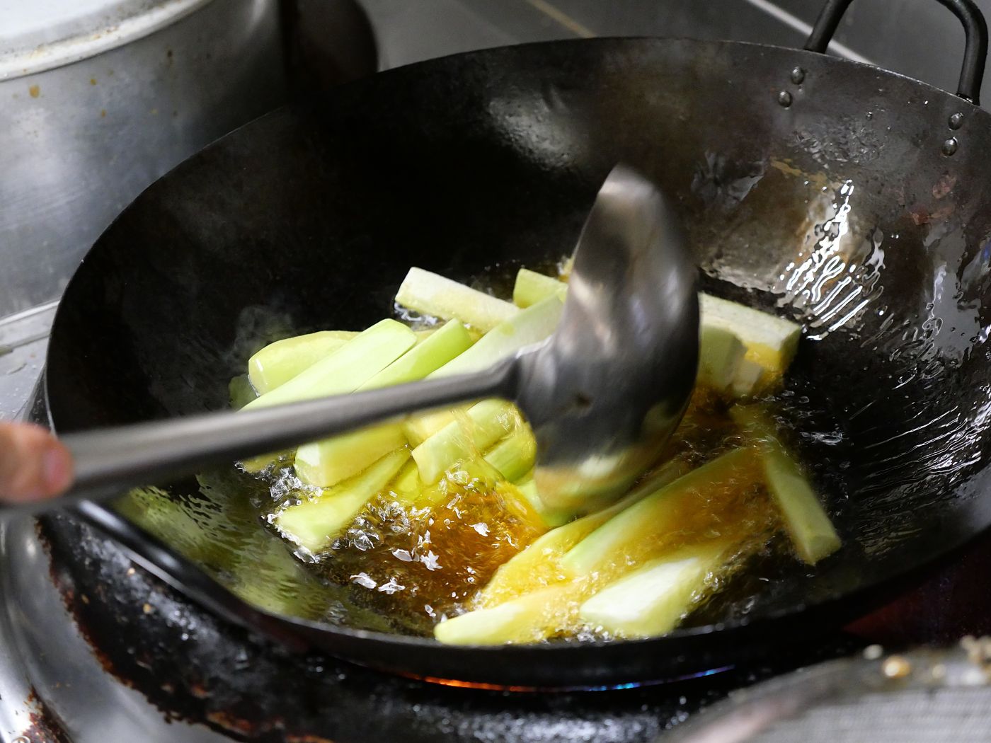 3:白腐乳、青泡辣椒、オイスターソース、塩ダレを炒め合わせる。
