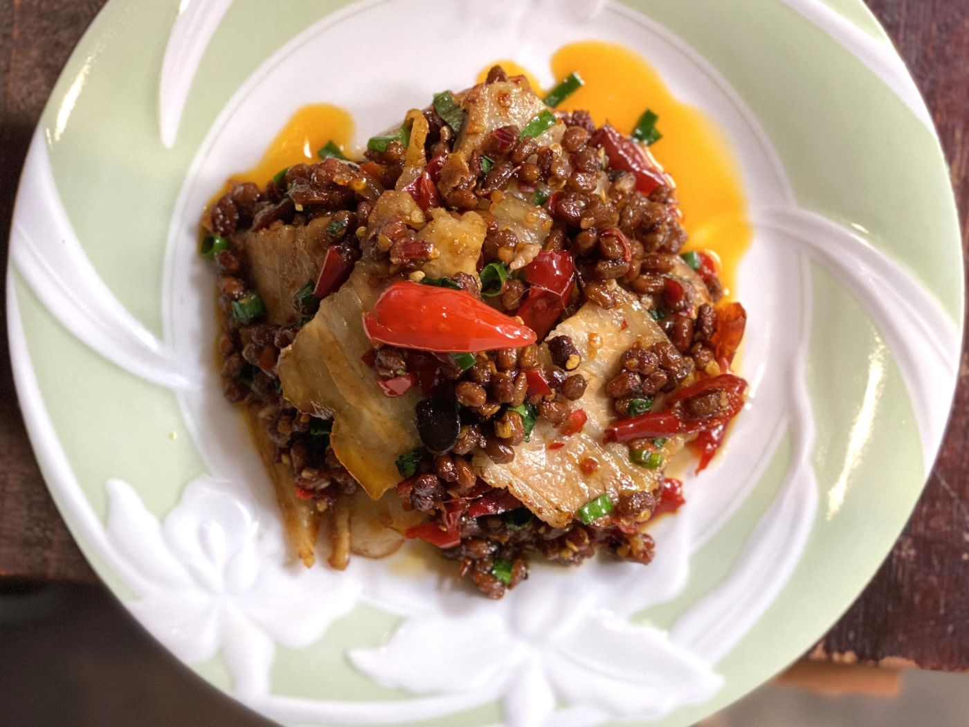 発酵させたカラシナ“酸菜”と、魚の骨でとった白湯(パイタン)で、淡水魚を煮込んだ酸菜魚(スァンツァイユ)。魚出汁ならではの軽さとコク、発酵させた青菜の酸味とうまみがクセになる一品で、中国では知名度の高い、人気メニューのひとつです。