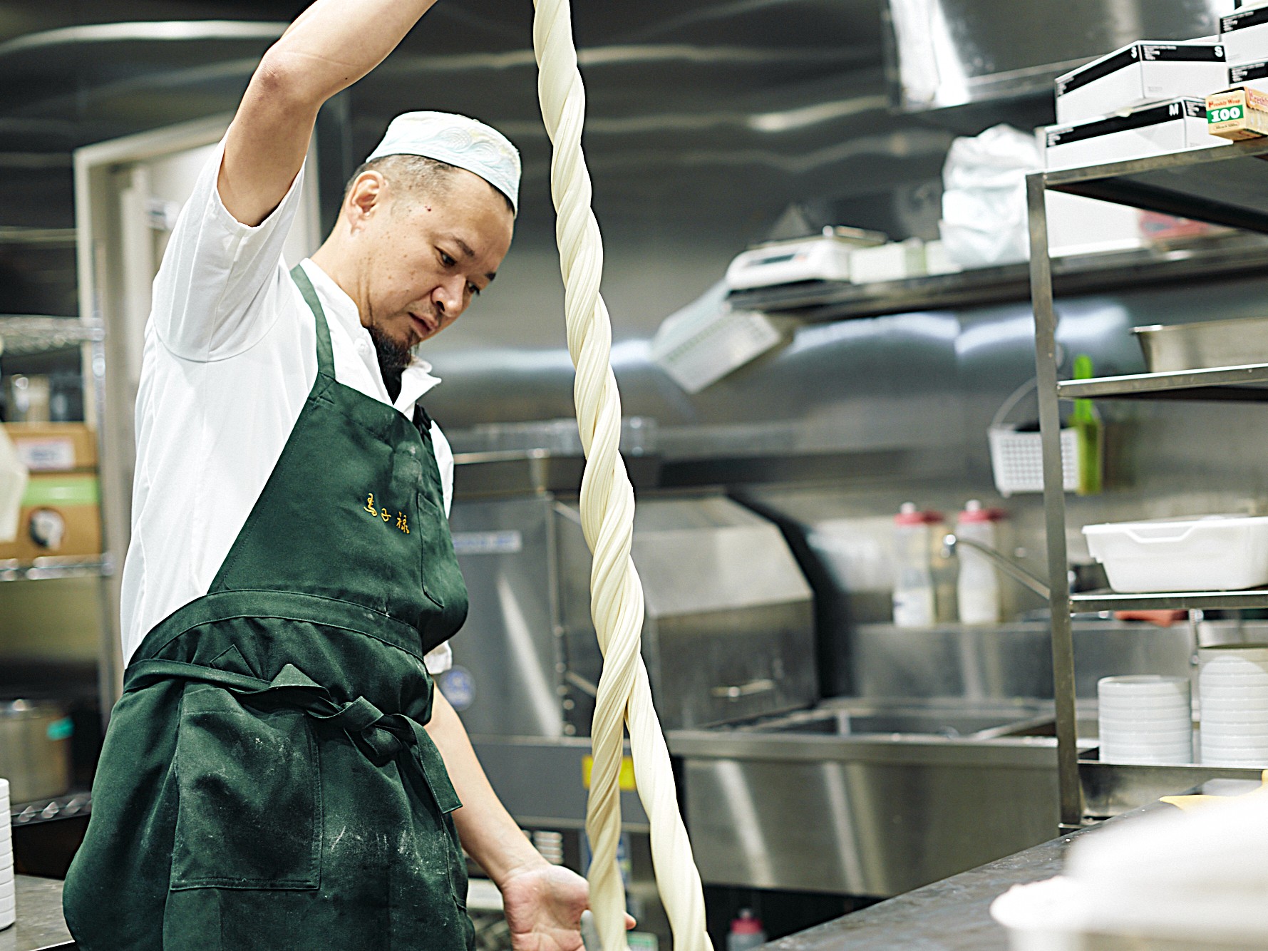 この意見には清野さんも完全同意。「溜条(リウティァオ)といって、くるくると生地を巻き付ける製麺プロセスも、グルテンの方向を揃える意味があります。さらに生地に油を加えているので、より滑らかさが出るんですよね」