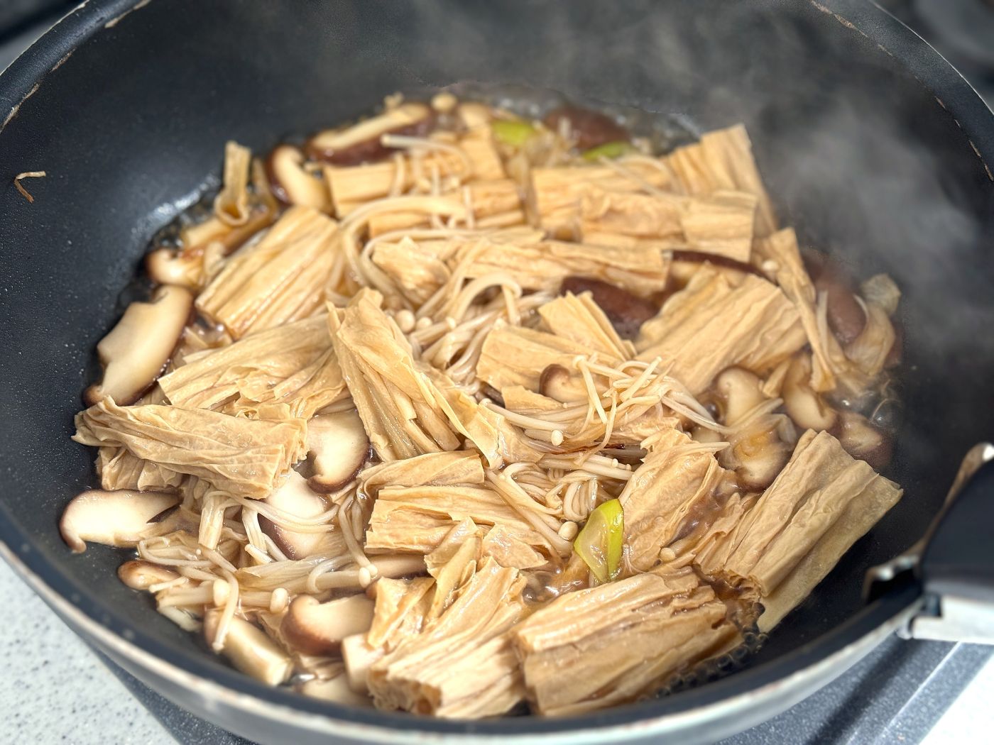 腐竹(ふちく)とキノコのオイスターソース煮込み(腐竹菌子煲)