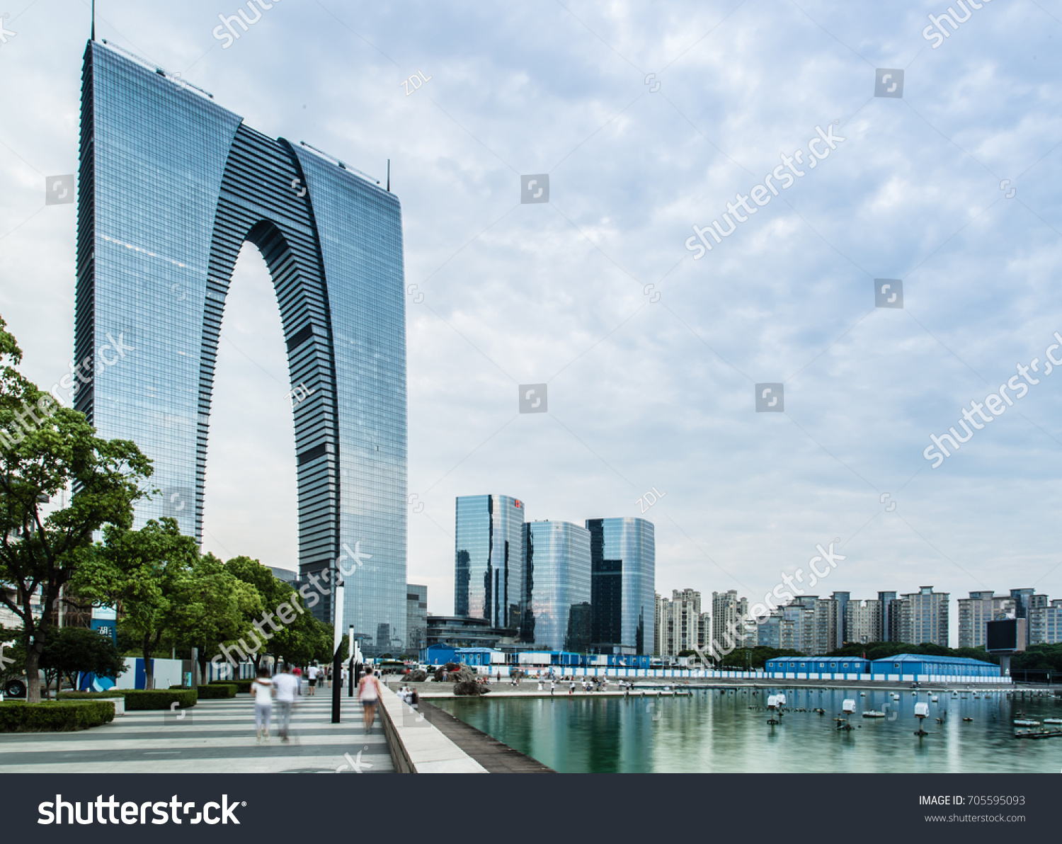stock-photo-suzhou-china-aug-the-east-gate-of-suzhou-new-cbd-landmark-building-705595093